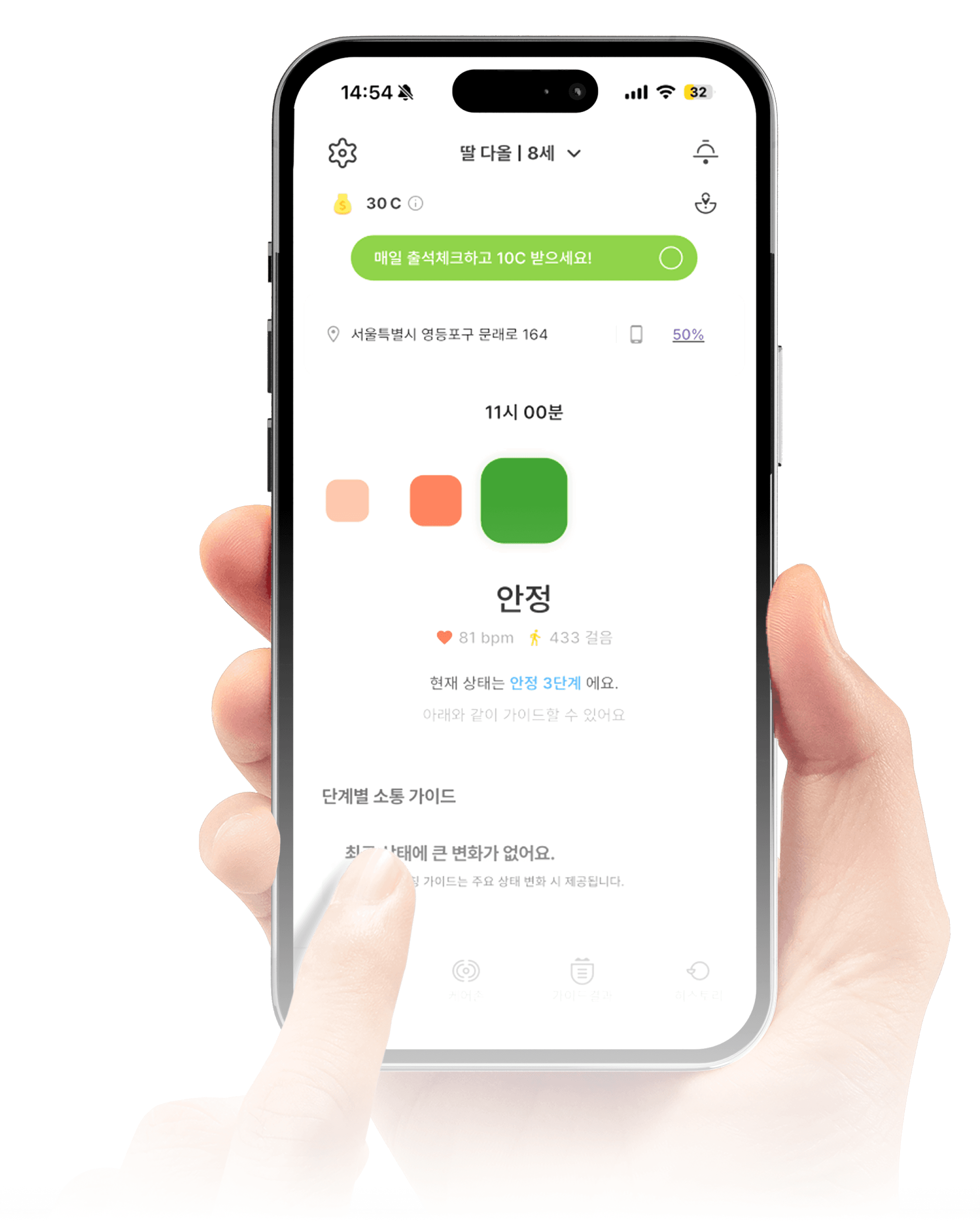 우리는 아이의 생체리듬과 위치, 그 이면의 감정까지 30분 단위로 분석합니다.