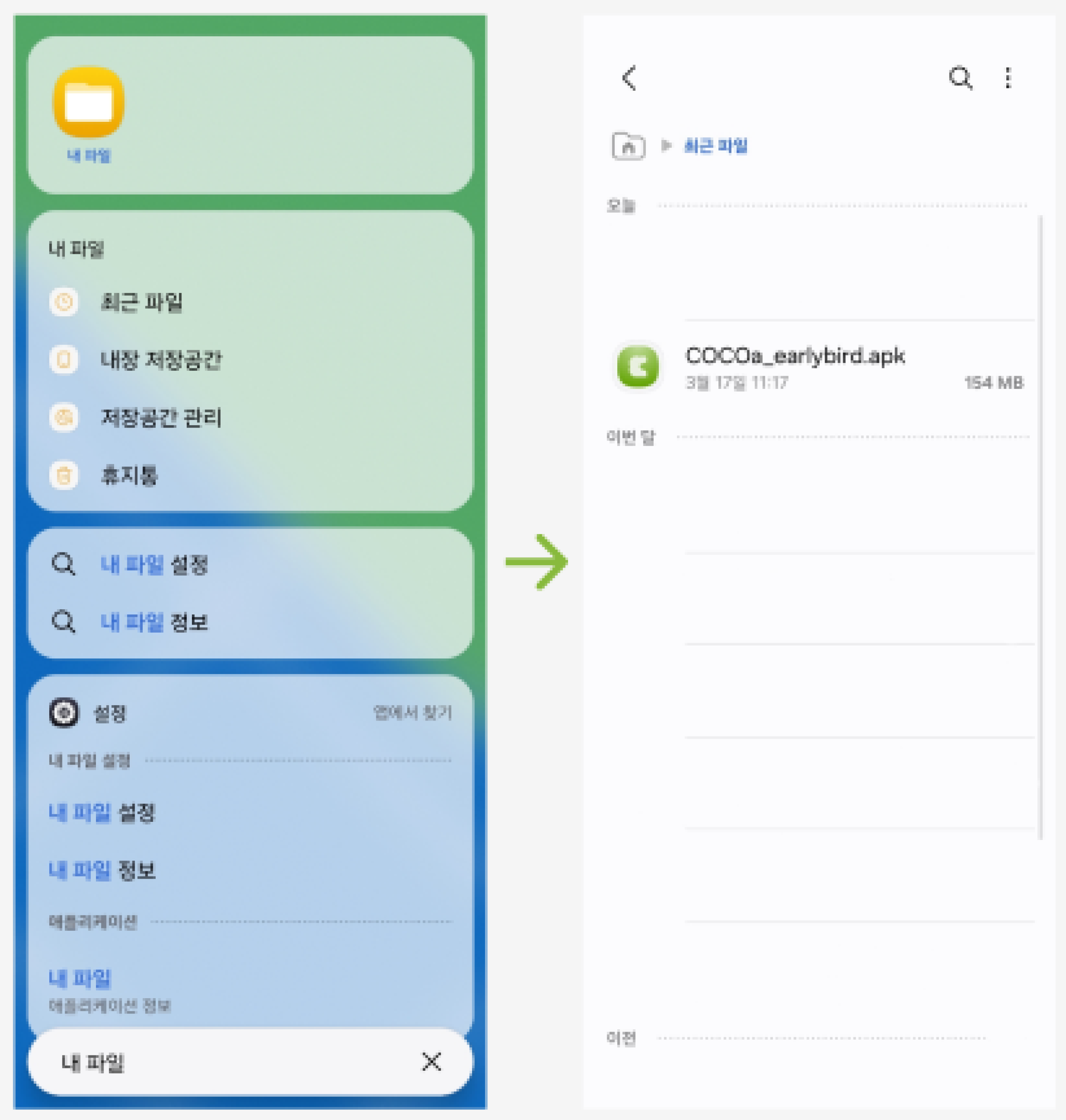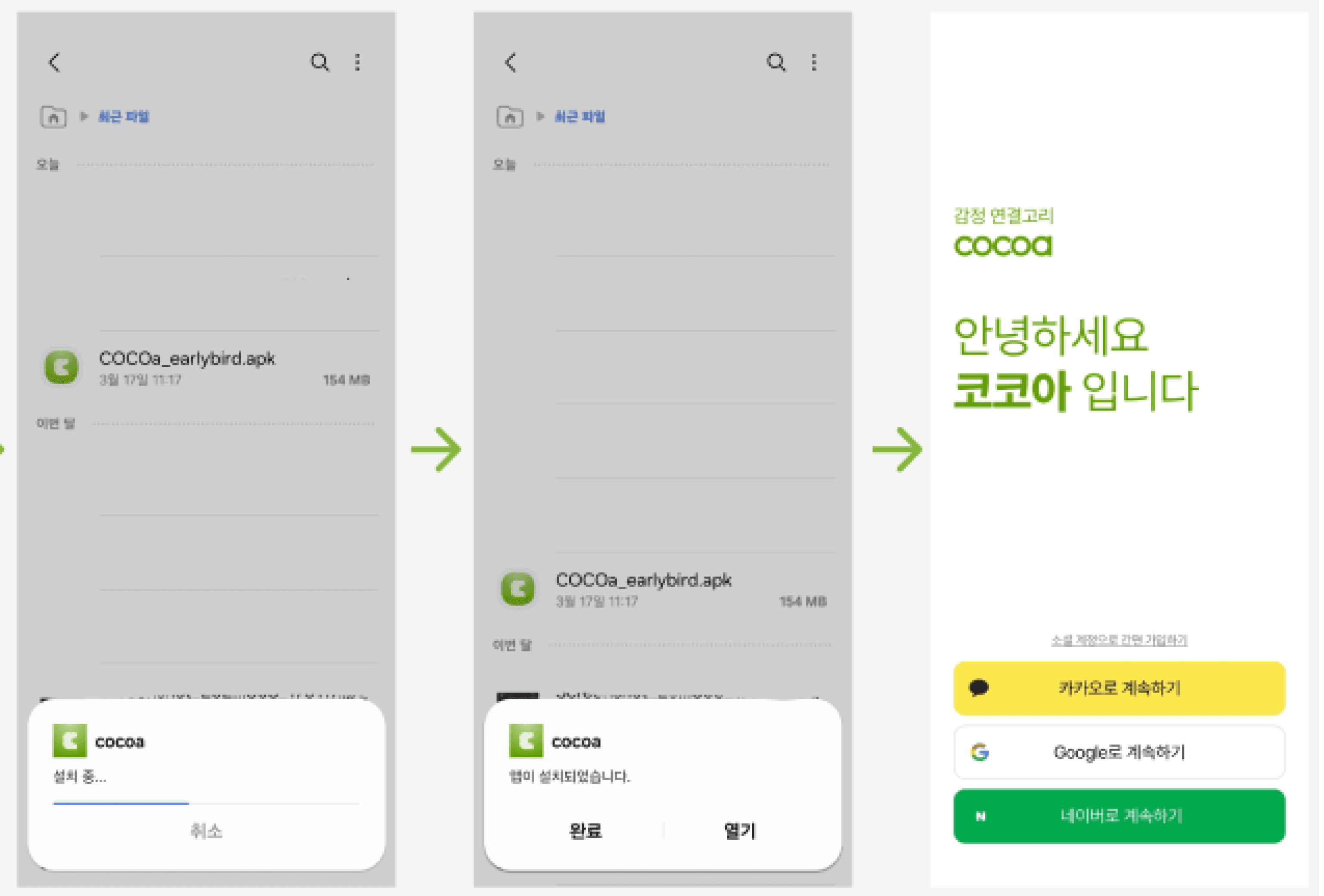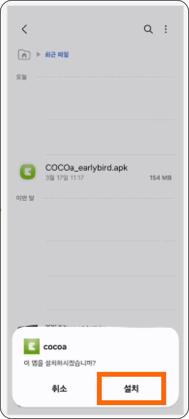 설치할 파일(COCOa_earlybird.apk)을